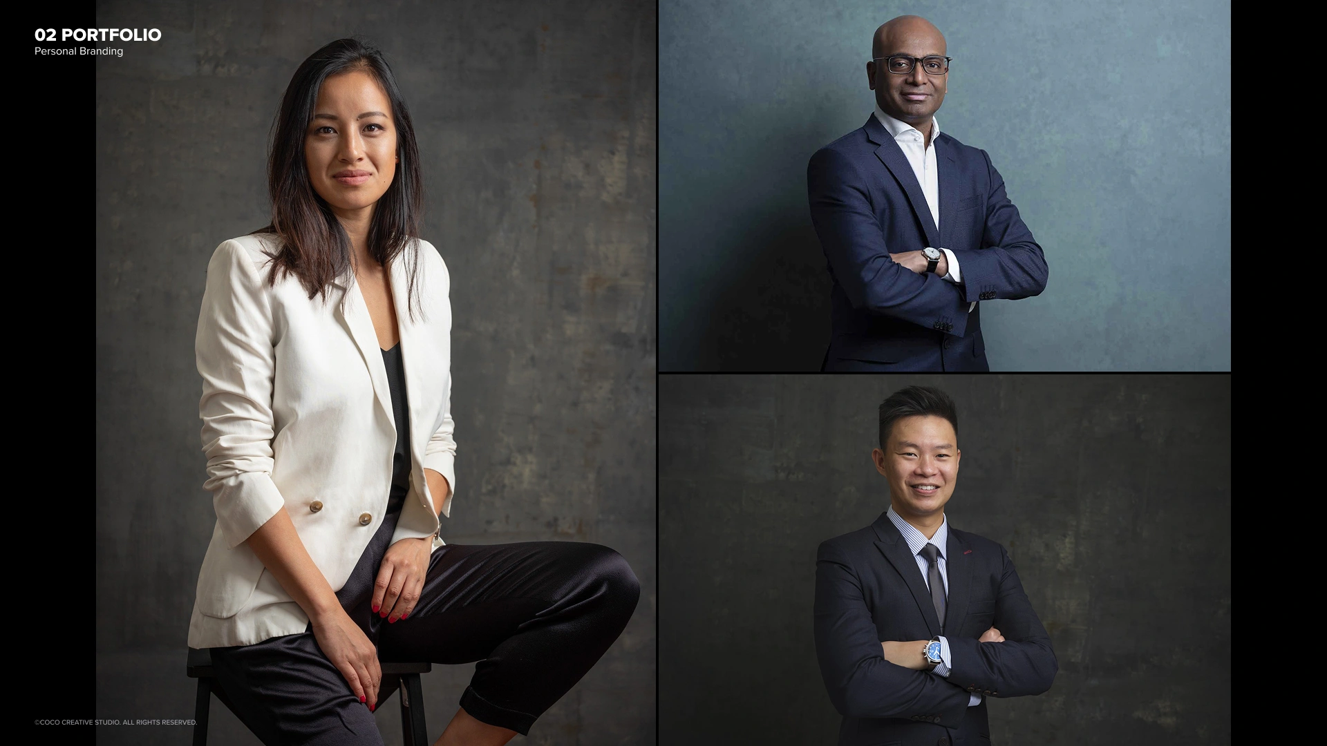 Skip to main contentCOCO Creative Studio offers professional headshot photography in Singapore, capturing both individual and corporate group portraits. Our expert photographers highlight your unique personality while conveying professionalism and authenticity. Whether for LinkedIn profiles, personal branding, or company websites, our sessions are tailored to meet your needs. Corporate team headshots showcase your staff with polished, cohesive images perfect for websites and annual reports. Elevate your professional image and make a lasting impression with our expertly crafted headshots.