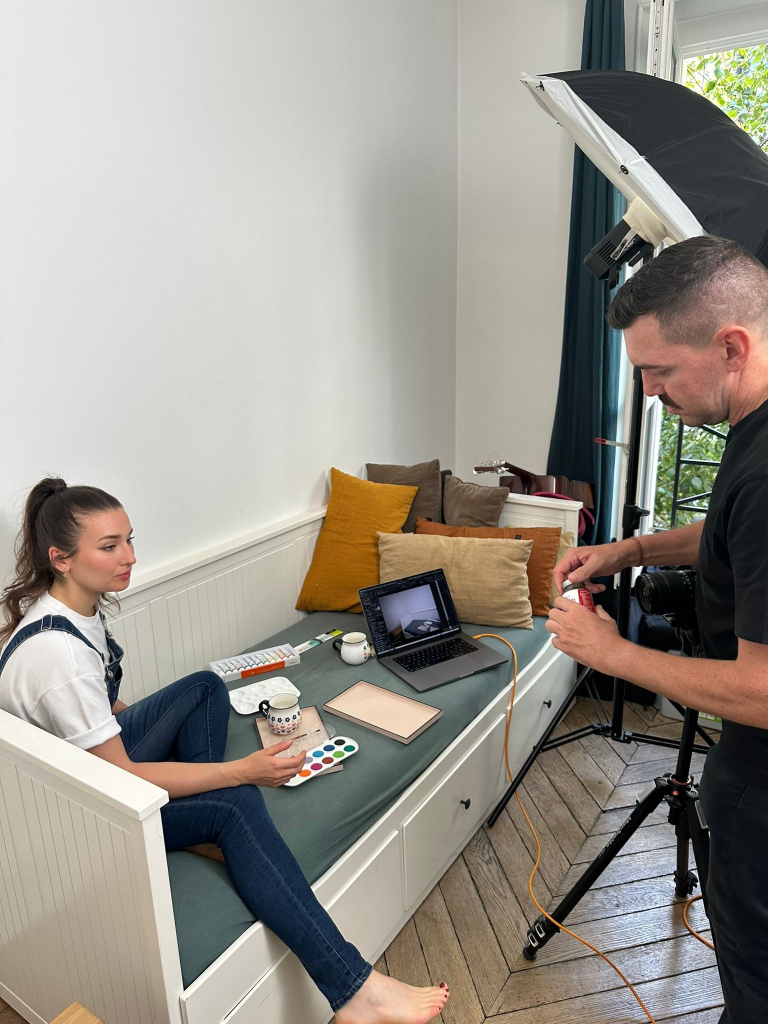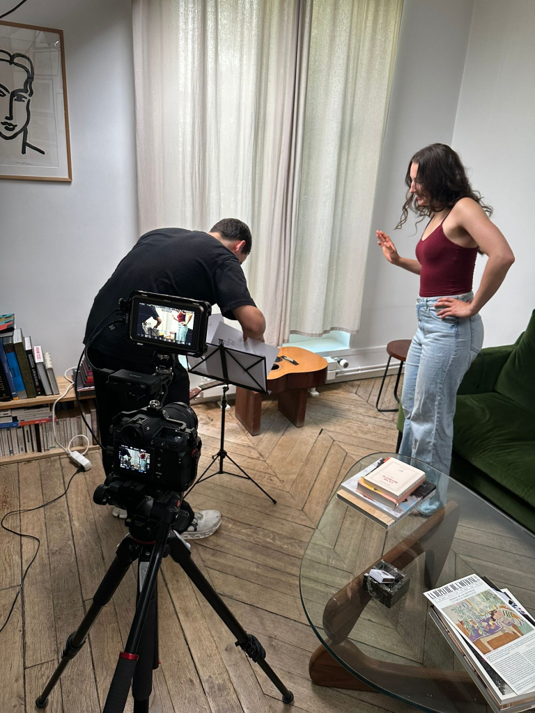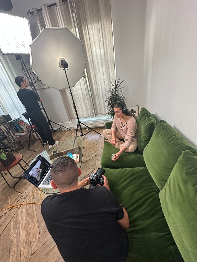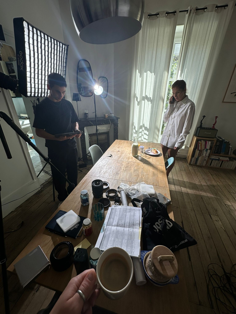 The shoot took place in the heart of summer, in Paris, in August 2025, with a very compact crew: a director/cinematographer, a photographer, a hair & makeup artist, and the three models.