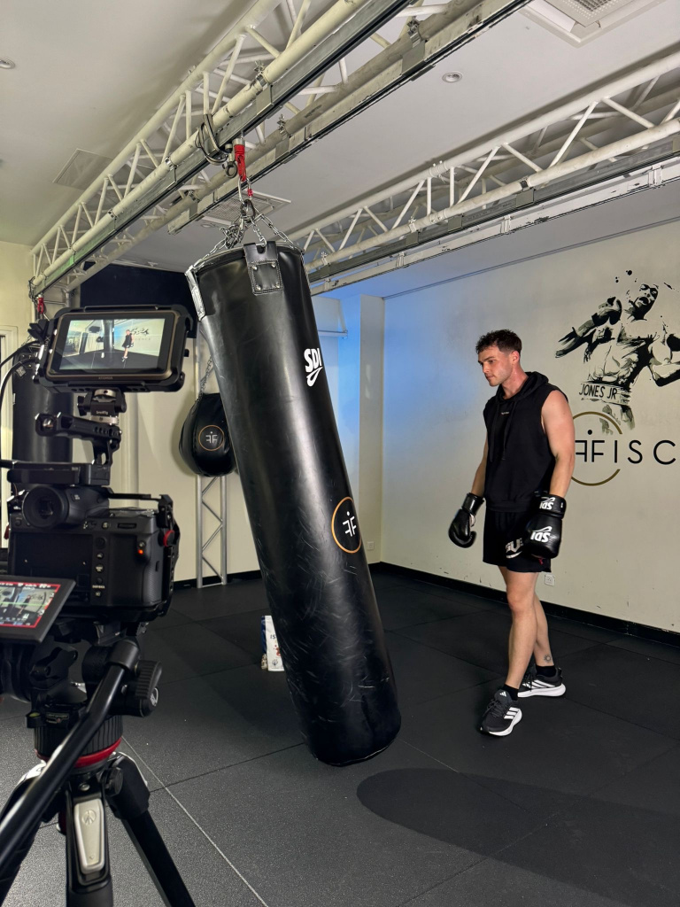 The day concluded in a gym located just 10 minutes away from the apartment, where we filmed his boxing and weight training shots.